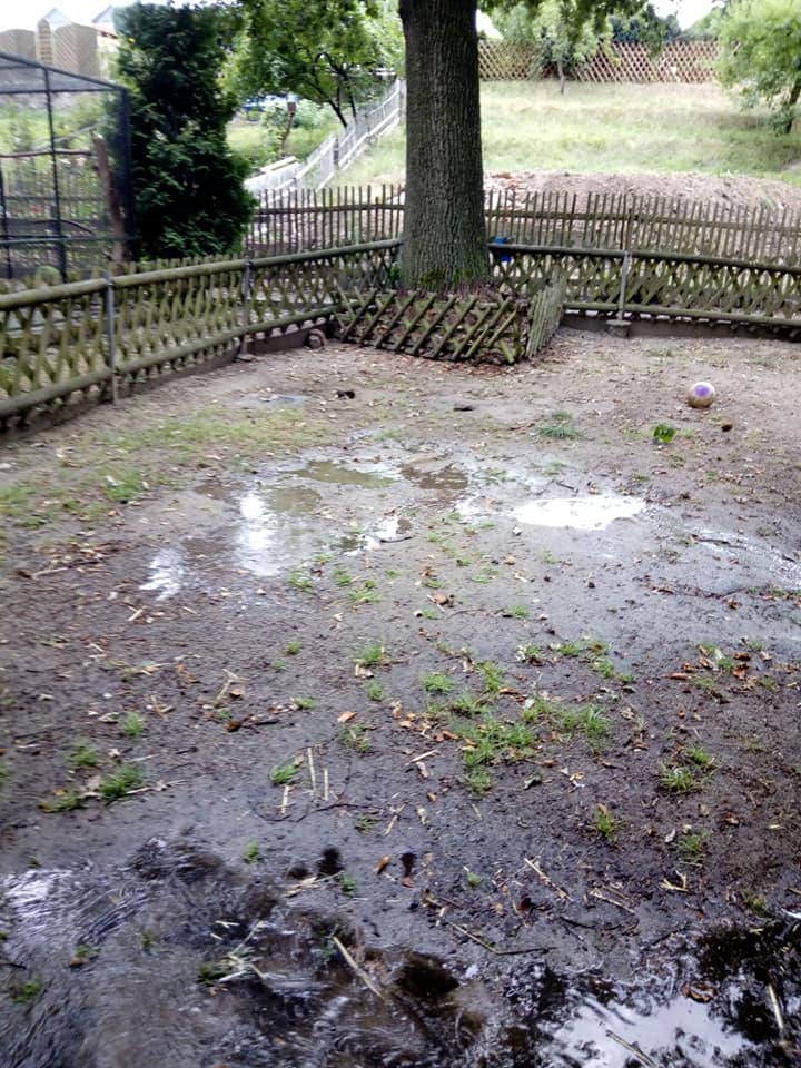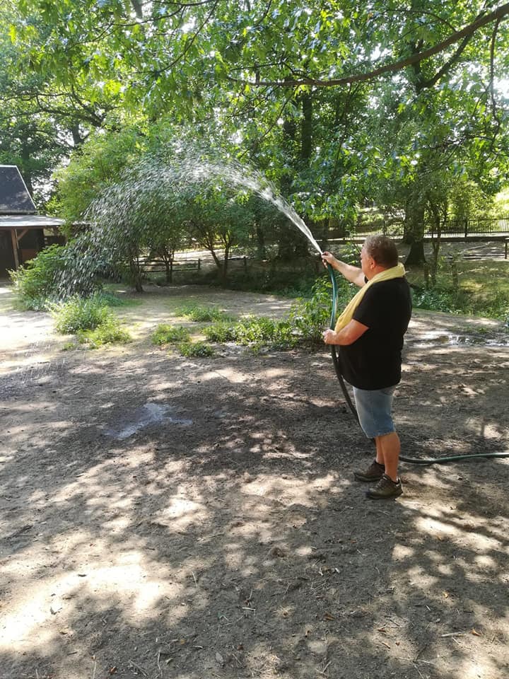 Bei den hohen Temperaturen dachten sich unsere Ehrenamtler, die Tiere freuen sich über eine kleine Dusche im Gehege. Die Gehegeböden sind auch sehr staubig, sodass das kühle Nass gleich 2 Vorteile bringt. Wer wie unsere Esel nicht nass werden wollte, konnte dem Wasserspaß natürlich auch nur zuschauen.